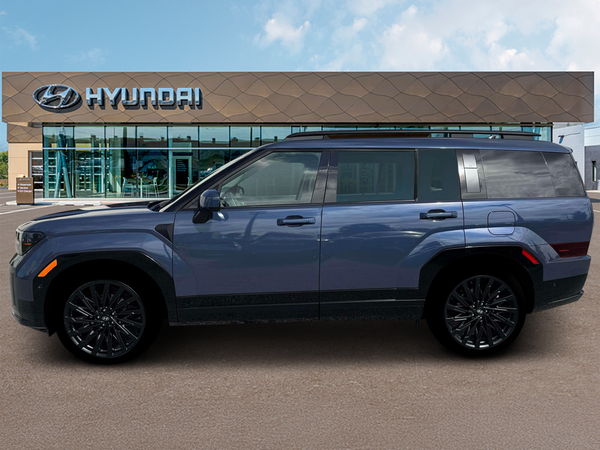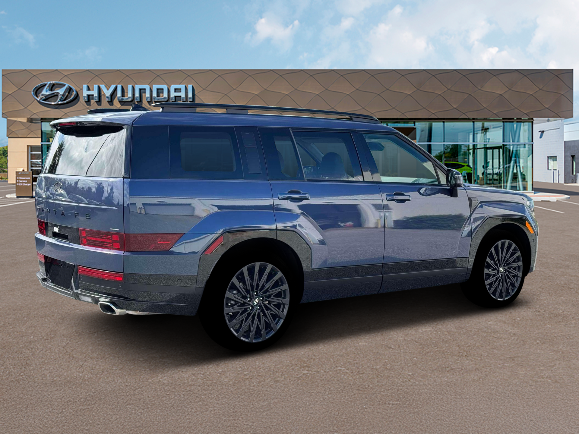 Priced below KBB Fair Purchase Price! $5,104 off MSRP! AWD, Gray Leather. Atlantis Blue 2026 Hyundai Santa Fe Calligraphy AWD 8-Speed Automatic with SHIFTRONIC 2.5L I4