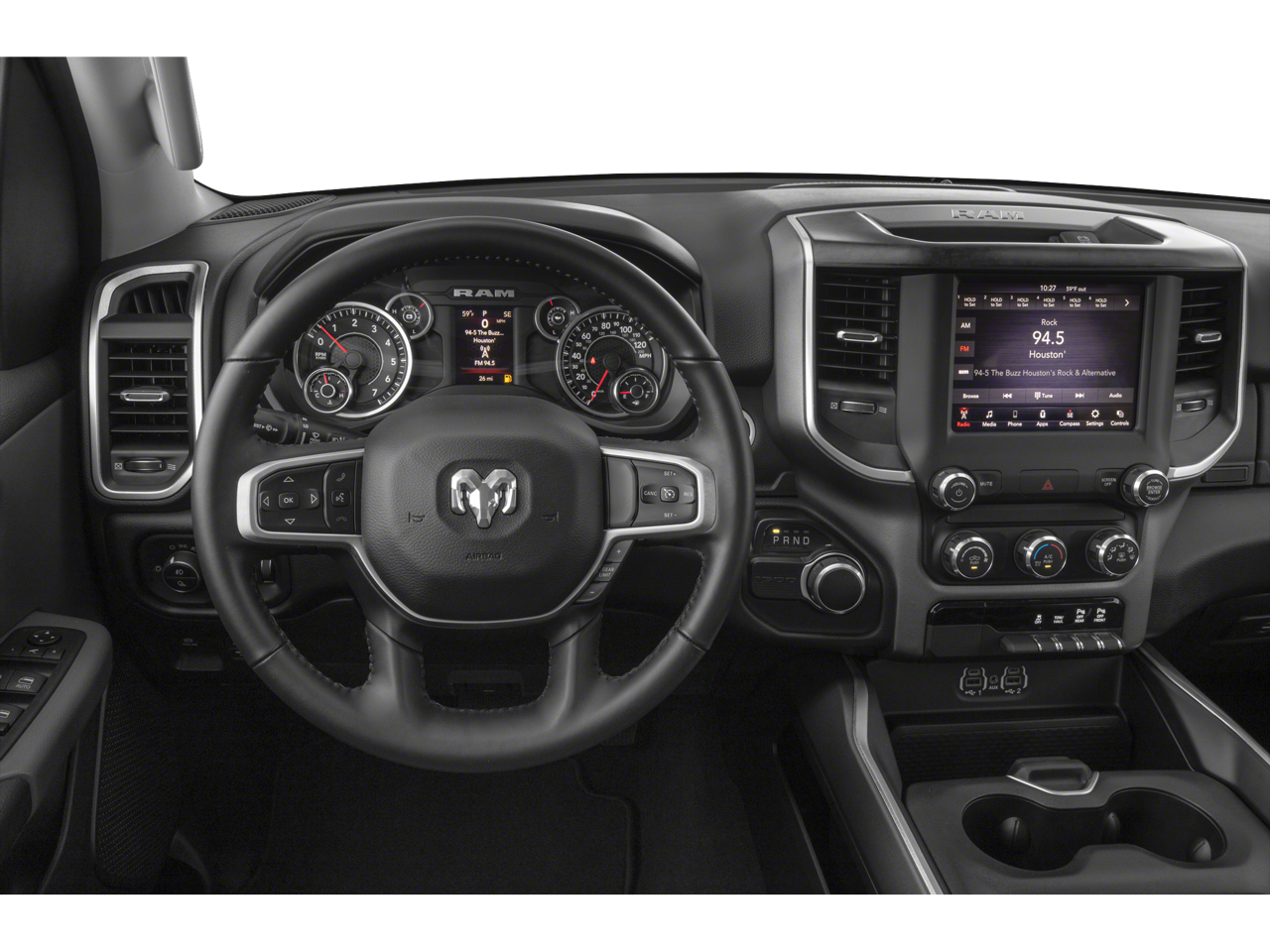 Inside, it offers an upscale experience with the Big Horn Level 2 Equipment Group giving you heated seats, heated steering wheel, dual-zone climate control, remote start, premium audio, integrated trailer brake, Apple CarPlay/Android Auto, and more.
