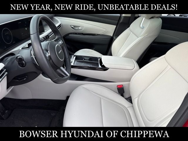 This 2025 Hyundai Tucson Plug-In Hybrid Limited AWD delivers cutting-edge efficiency, premium luxury, and advanced technology in a bold, modern SUV. Finished in Ultimate Red with a refined Gray leather interior, this Tucson combines a 1.6L turbocharged plug-in hybrid powertrain with all-wheel drive, giving you impressive electric-assisted performance without sacrificing capability.